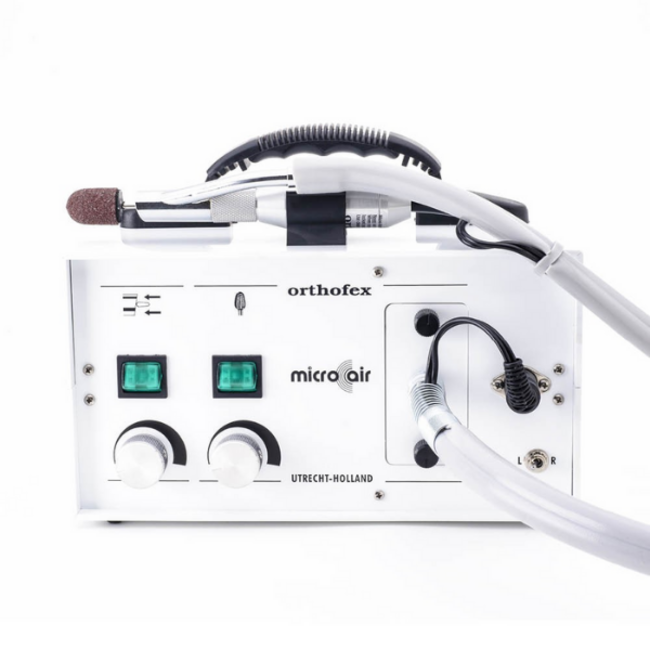 Le MICRO AIR AVEC EXTRACTION DE POUSSIÈRE de la marque Orthofex est un moteur très approprié pour les pédicures et les stylistes d'ongles. Forte de plus de 40 ans d'expérience, il s'agit de la dernière génération de machines d'extraction. Avec une capacité d'aspiration encore plus forte et avec une pièce à main ultra-légère de 40 000 tr/min avec un système de serrage professionnel.