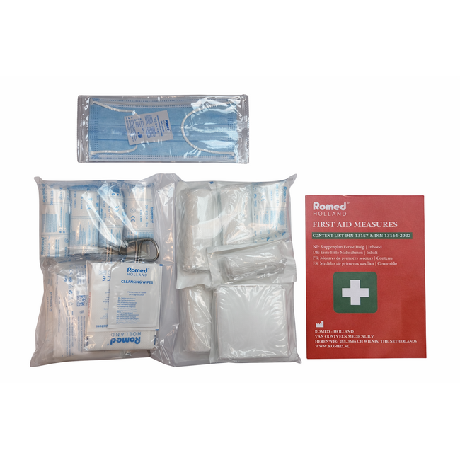 De Romed navulling voor standaard verbanddozen volgens DIN 13157 norm bevat een zorgvuldig samengestelde selectie eerstehulpmaterialen voor het vervangen of aanvullen van de inhoud van een standaard verbanddoos. De inhoud voldoet aan de richtlijnen van de DIN 13157 norm en bevat essentiële hulpmiddelen om snel en adequaat eerste hulp te kunnen verlenen bij verwondingen op de werkplek.